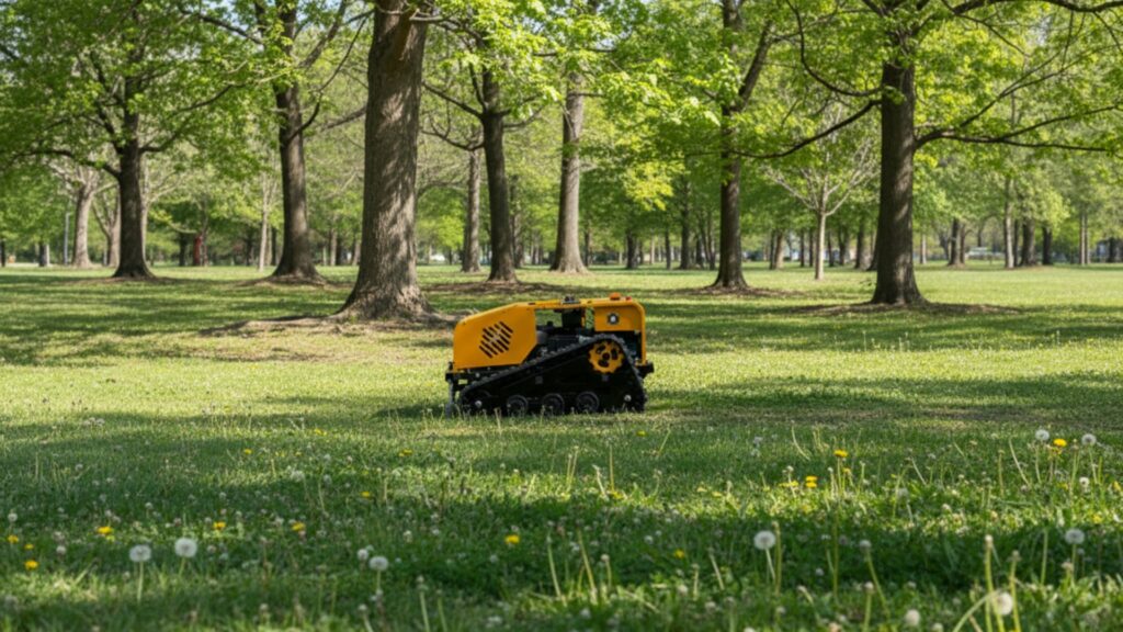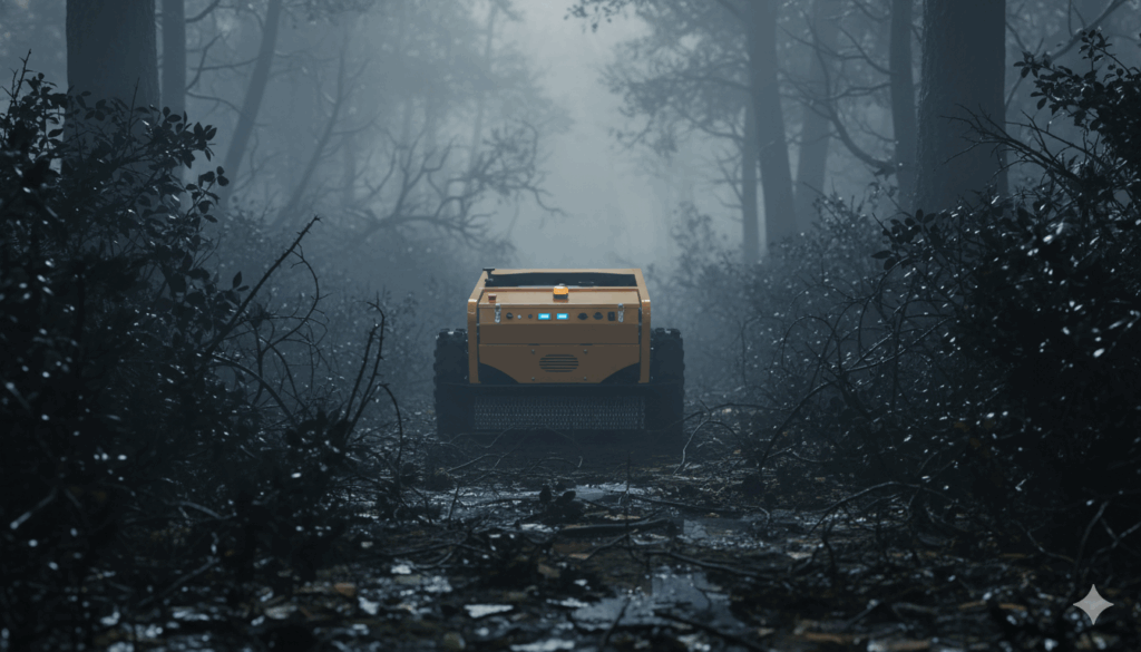 Son système à chenilles motrices brushless assure une adhérence totale, même sur terrain meuble ou en végétation dense.